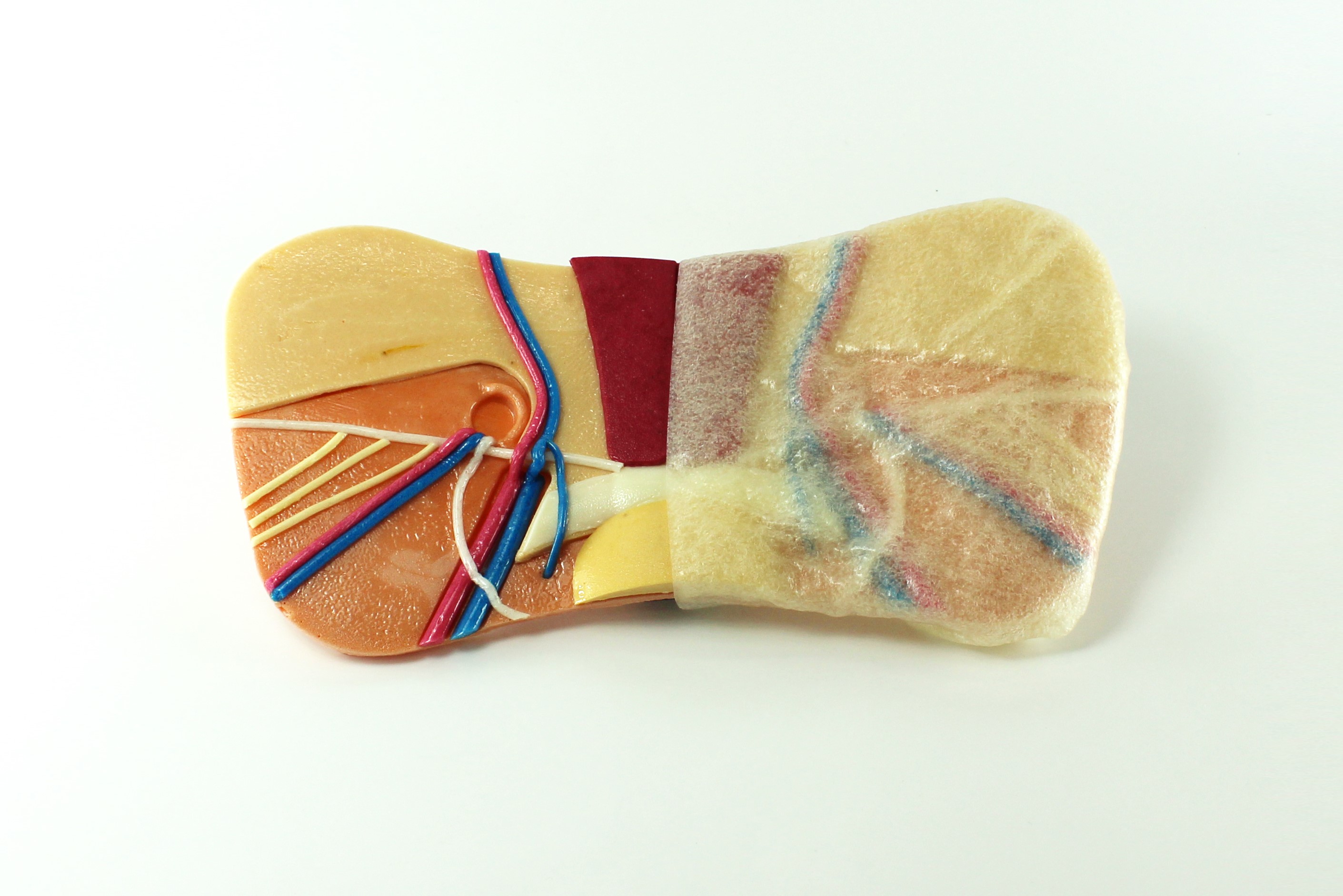 膀胱、クーパー靭帯、横筋腱膜弓、ヘルニア門、外腸骨動静脈膜、動脈、静脈、内側臍ヒダ(全て繰り返し使用可能なウレタン素材)